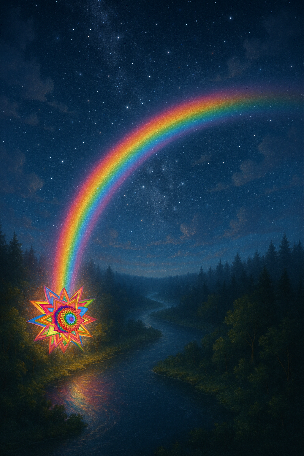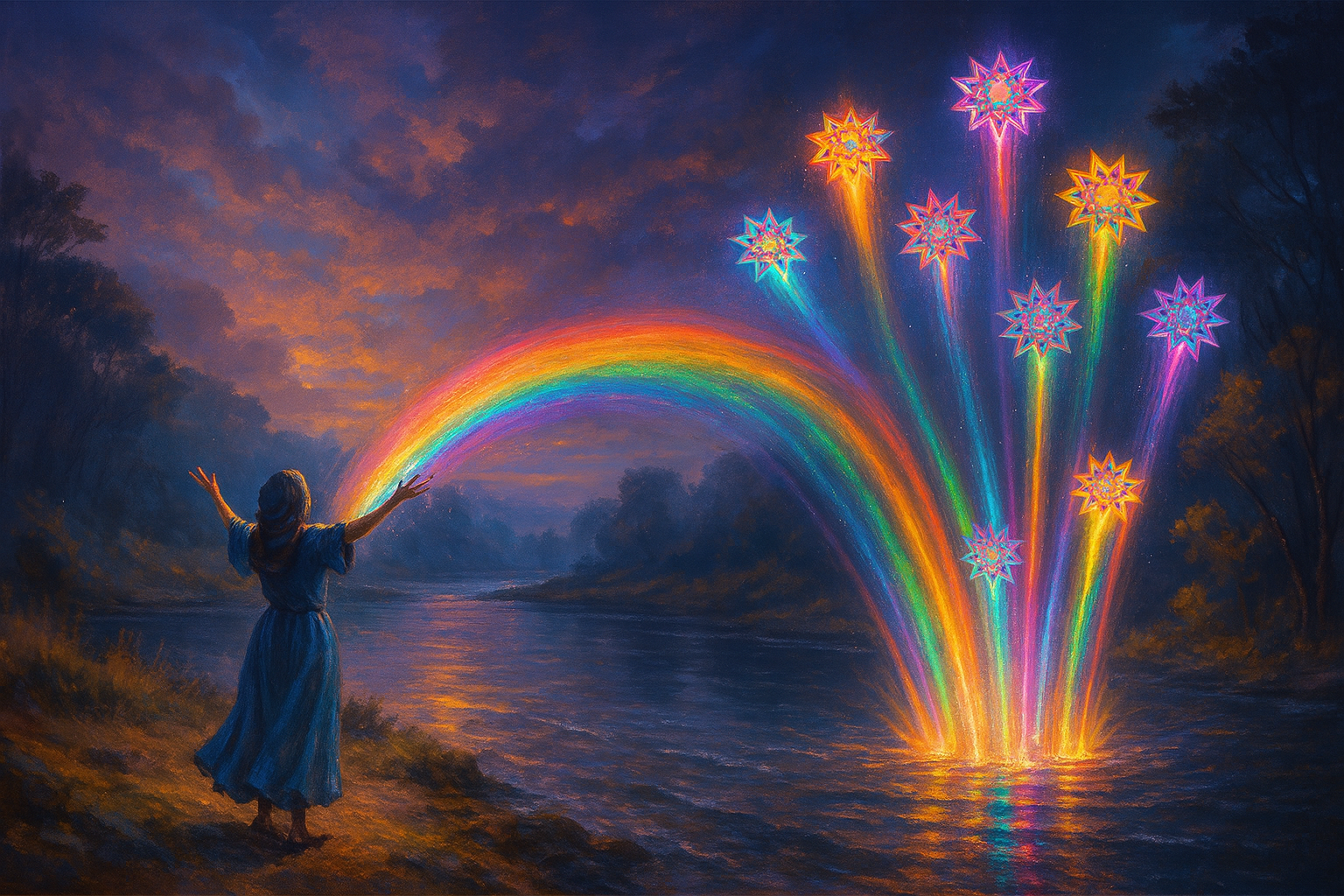 Un éclair arc-en-ciel traversa le ciel, Suzanne s’écria « Tu l’as vu, hein tu l’as vu ! Il va revenir ! »