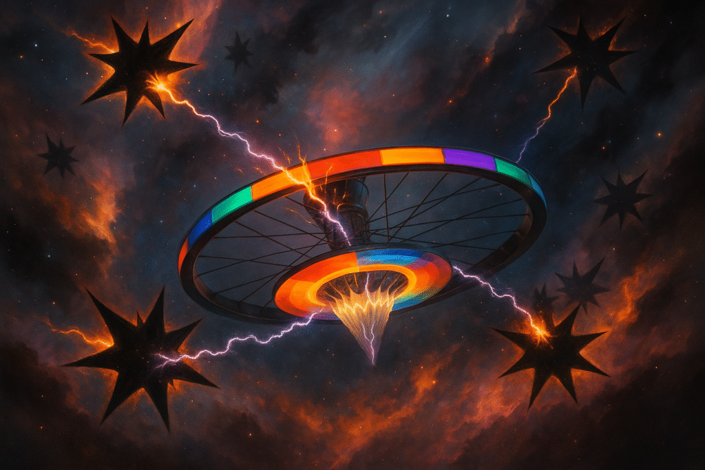 La situation évoluait plus vite que ne l’auraient jamais imaginé les Seigneurs de la Couleur. La station spatiale Dyson chromatique n°86 ne vit pas venir les étoiles sombres. Le combat fit rage : d’immenses éclairs d’énergie noire déchiraient les couleurs de l’anneau, effaçant peu à peu les teintes multicolores.