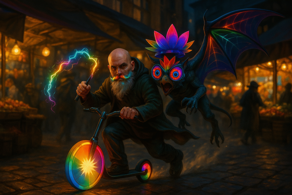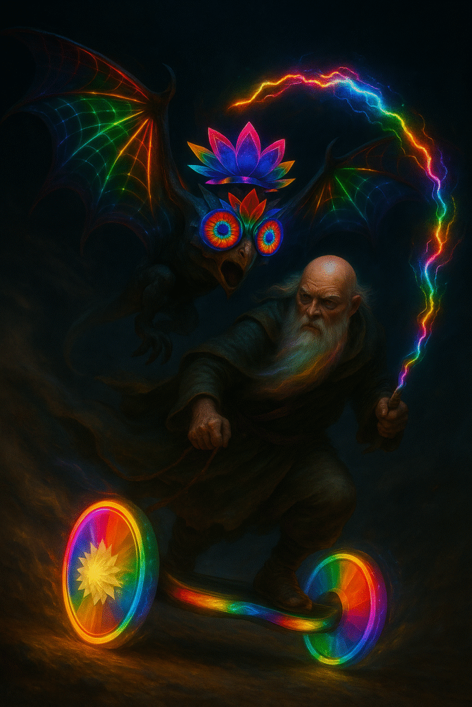 La lumière de la potion illuminait de mille et une couleurs la barbe de Chauvessourix.