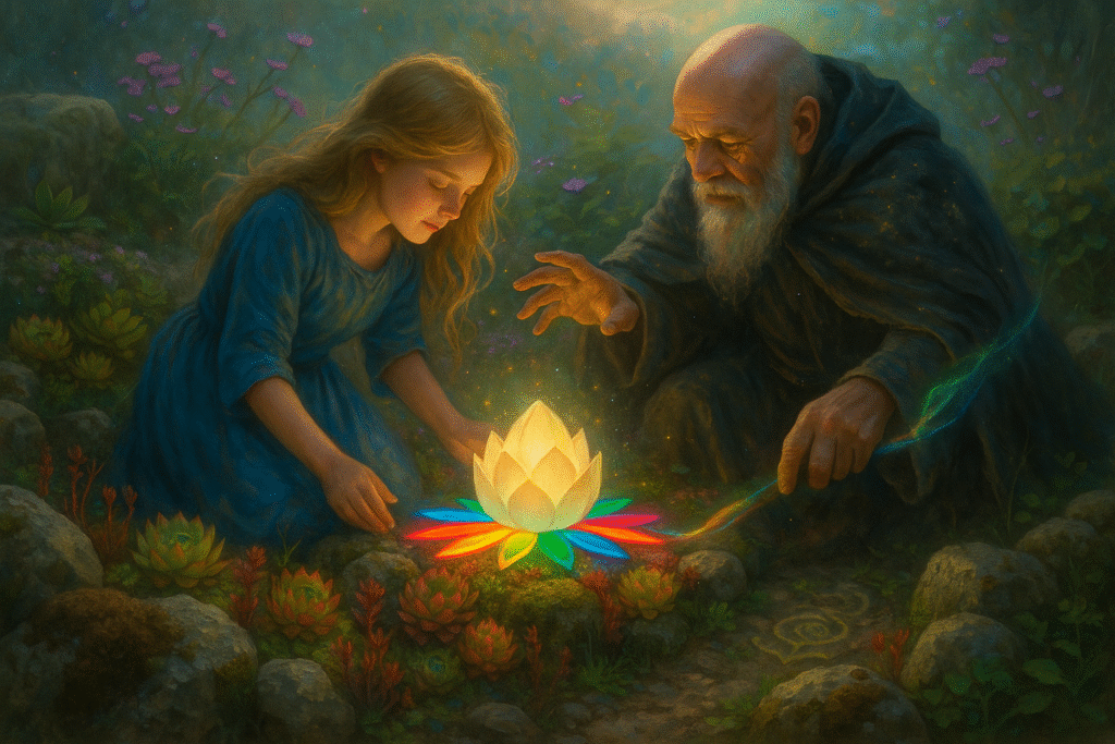 Elle rencontra Chauvessourix, qui lui apprit à faire renaître les Solendria lutichroma, source de couleurs.