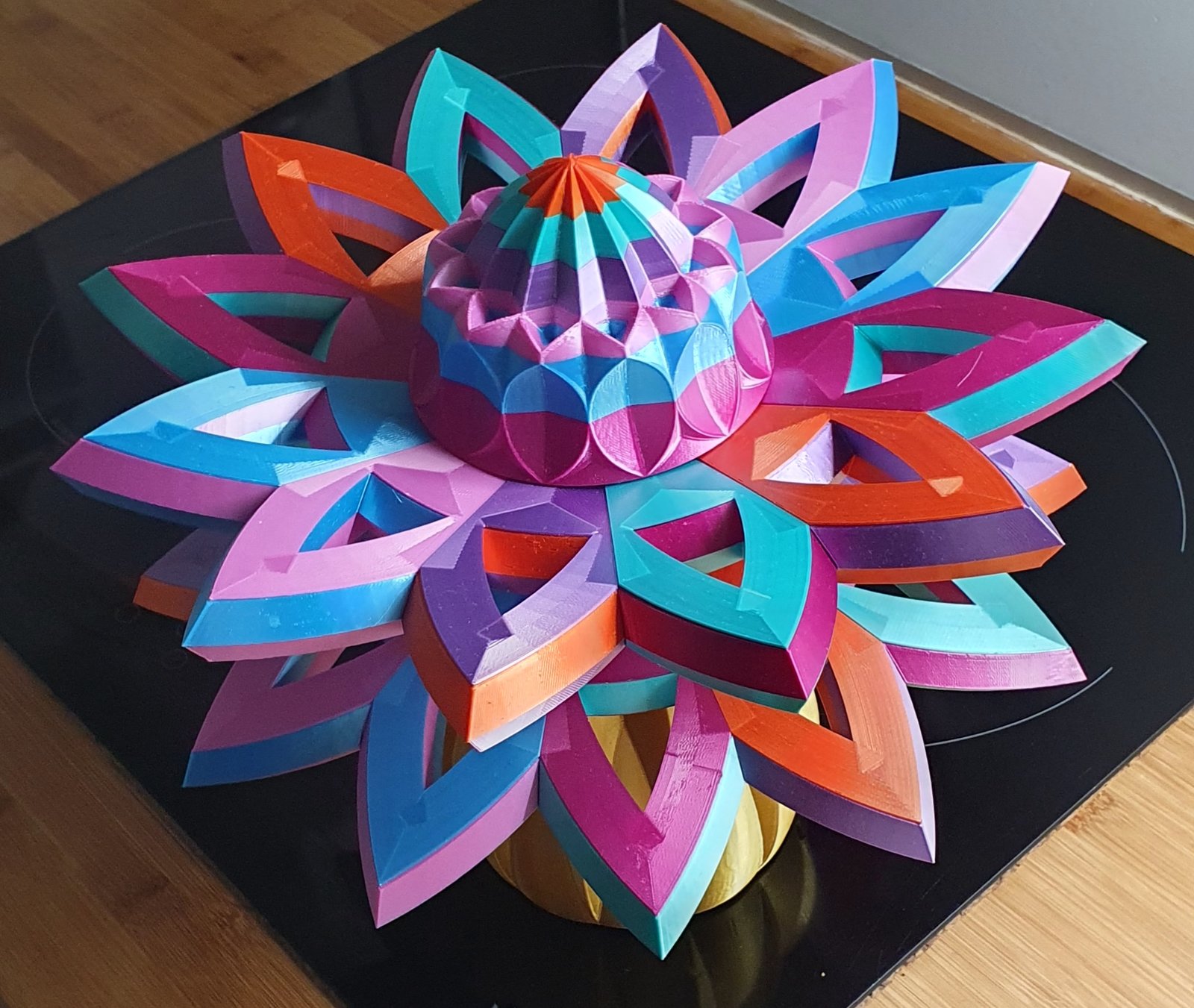 Composé de deux rosaces hexacolores et d’une décoration hexacolore.