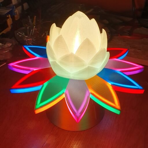 Composé d’une rosaces multicolores à douze pétales bicolores et d’un artichaut à bulbe central.